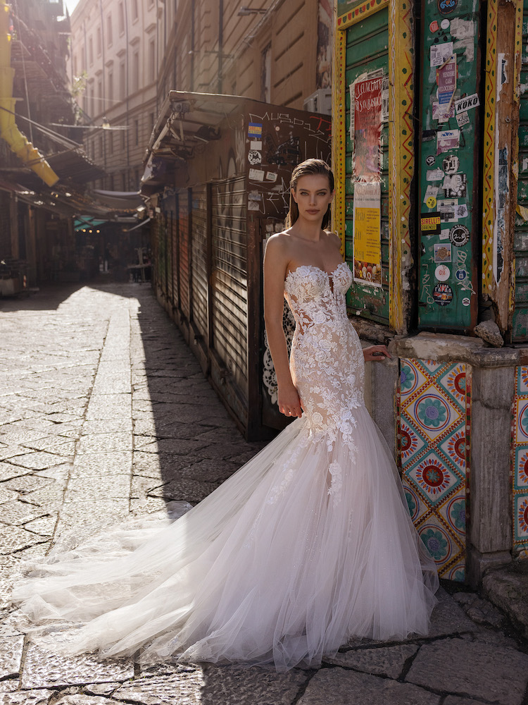 Il pizzo è un tessuto intramontabile che aggiunge un tocco di classe e bellezza a qualsiasi abito da sposa. La sua delicatezza e la sua trama intricata conferiscono un senso di romanticismo e femminilità che è difficile da eguagliare. È una scelta perfetta per le spose che desiderano un look classico ma allo stesso tempo affascinante. I nostri abiti da sposa in pizzo sono disponibili in una varietà di stili, tra cui abiti a sirena, abiti principeschi, abiti a linea e molto altro. La vestibilità è essenziale quando si tratta di un abito da sposa. Il nostro staff è a tua disposizione per assicurarsi che il tuo abito da sposa in pizzo sia cucito su misura per te. Realizziamo adattamenti e modifiche per garantire che l’abito si adatti perfettamente alla tua figura, in modo da farti sentire sicura e bellissima nel giorno del tuo matrimonio.